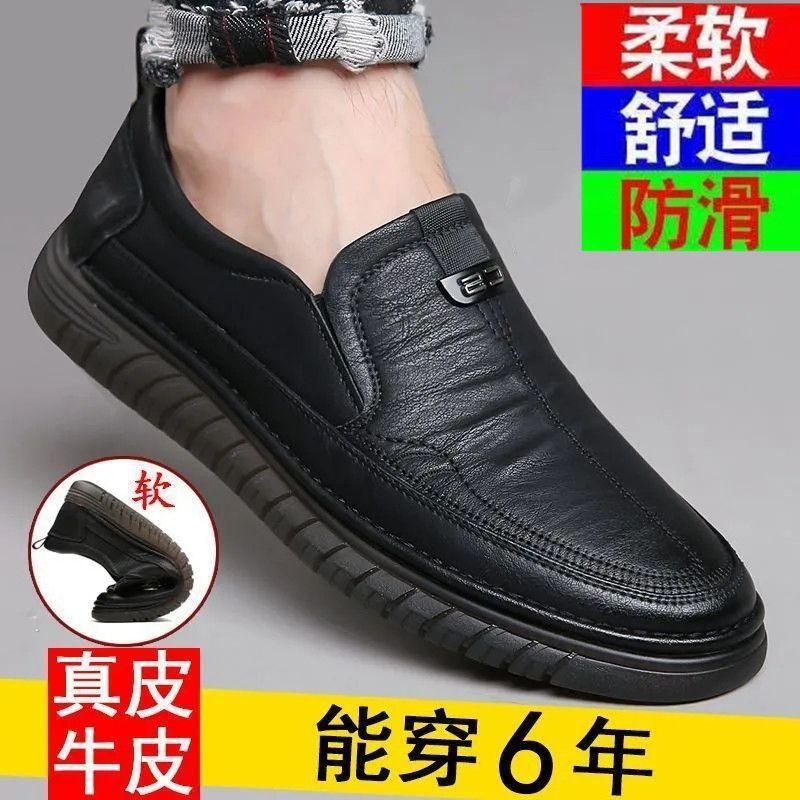 【真皮全牛皮】新款男士皮鞋男商务休闲真皮软底套脚中老年爸爸鞋